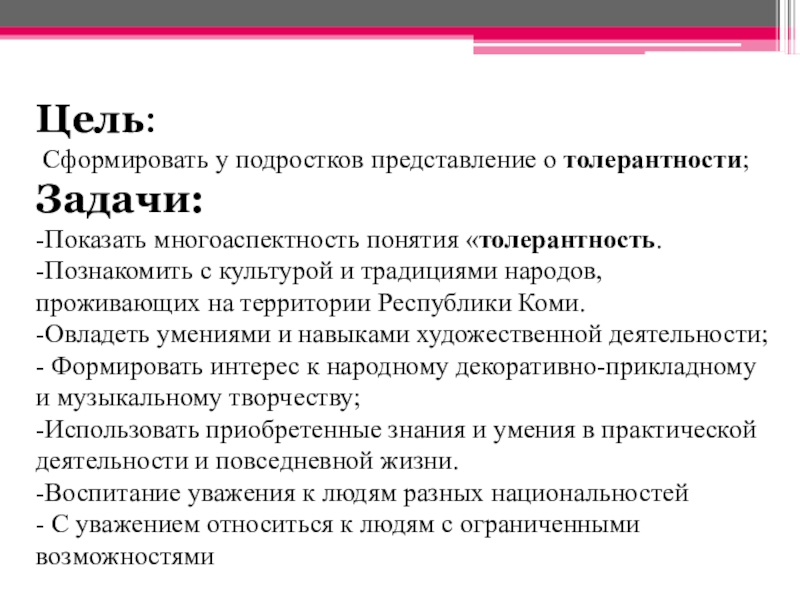 - Формировать интерес к народному декоративно-прикладному и музыкальному творчеству;