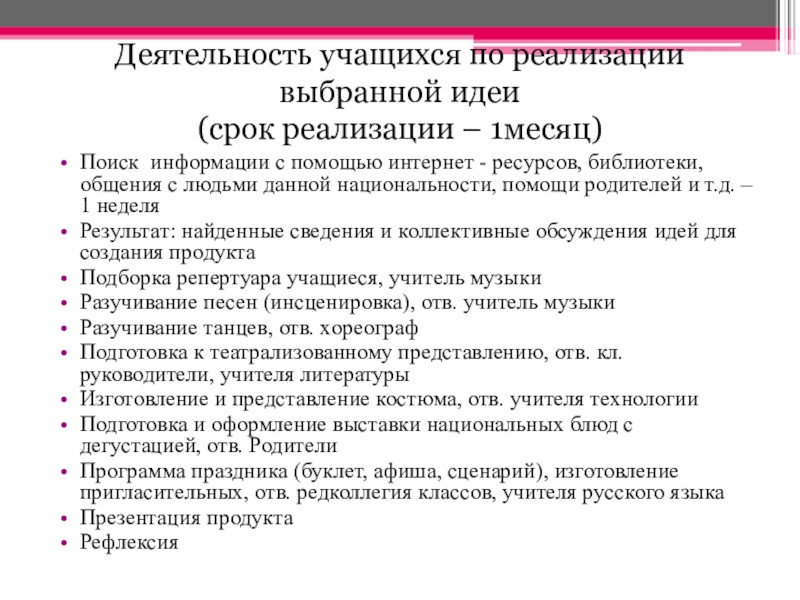 Слайд 9Деятельность учащихся по реализации выбранной идеи