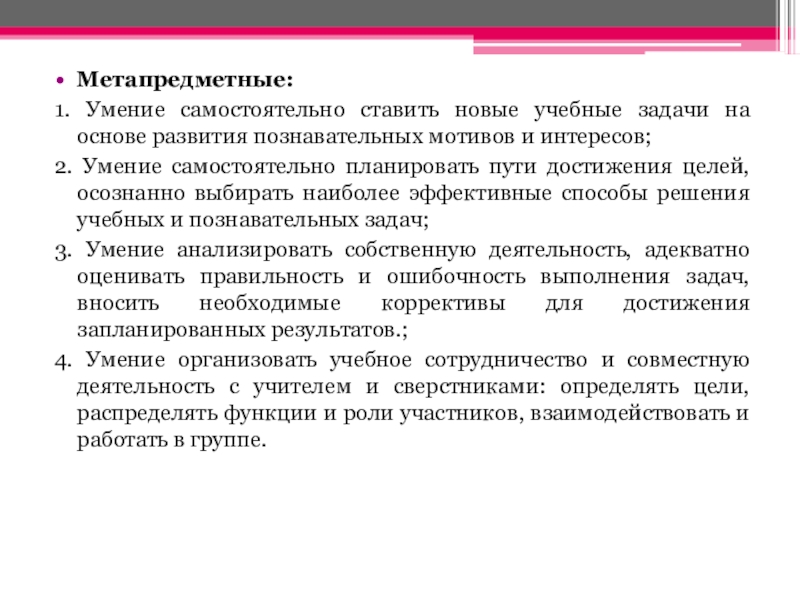 1. Умение самостоятельно ставить новые учебные задачи на основе развития познавательных
