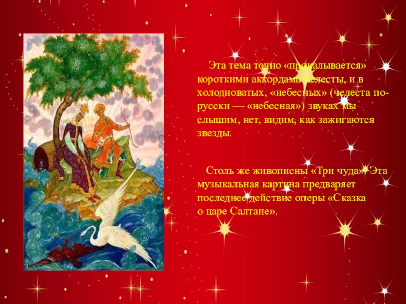 Столь же живописны «Три чуда». Эта музыкальная картина предваряет последнее действие оперы «Сказка