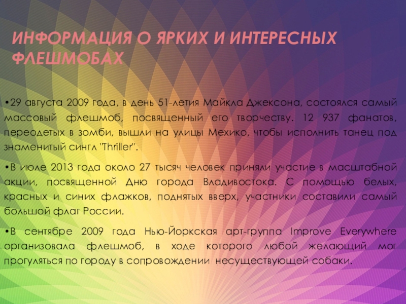 Слайд 9ИНФОРМАЦИЯ О ЯРКИХ И ИНТЕРЕСНЫХ ФЛЕШМОБАХ