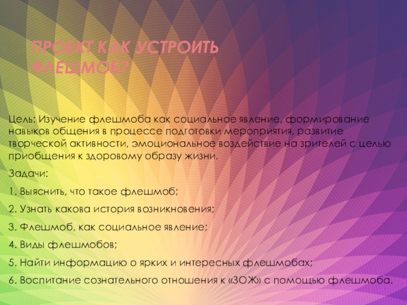 Цель: Изучение флешмоба как социальное явление, формирование навыков