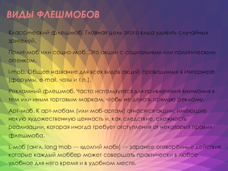 Слайд 8ВИДЫ ФЛЕШМОБОВ