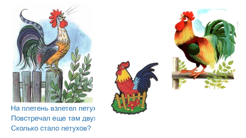Слайд 4 На плетень взлетел петух.