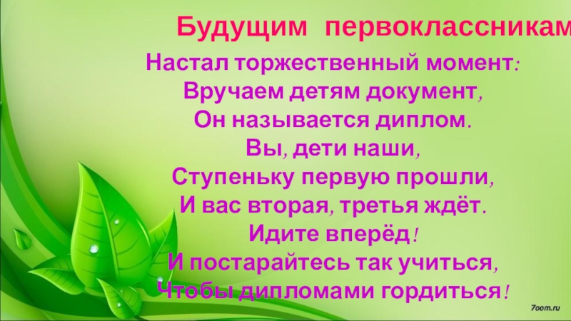 Слайд 17 Будущим первоклассникам: