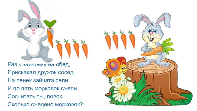 Слайд 7Раз к зайчонку на обед,