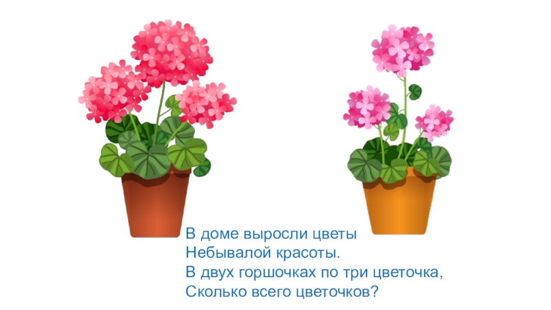 В двух горшочках по три цветочка,