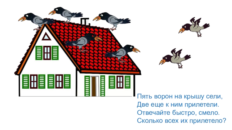Слайд 6Пять ворон на крышу сели,