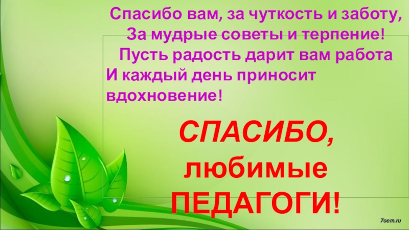 Слайд 15Спасибо вам, за чуткость и заботу,