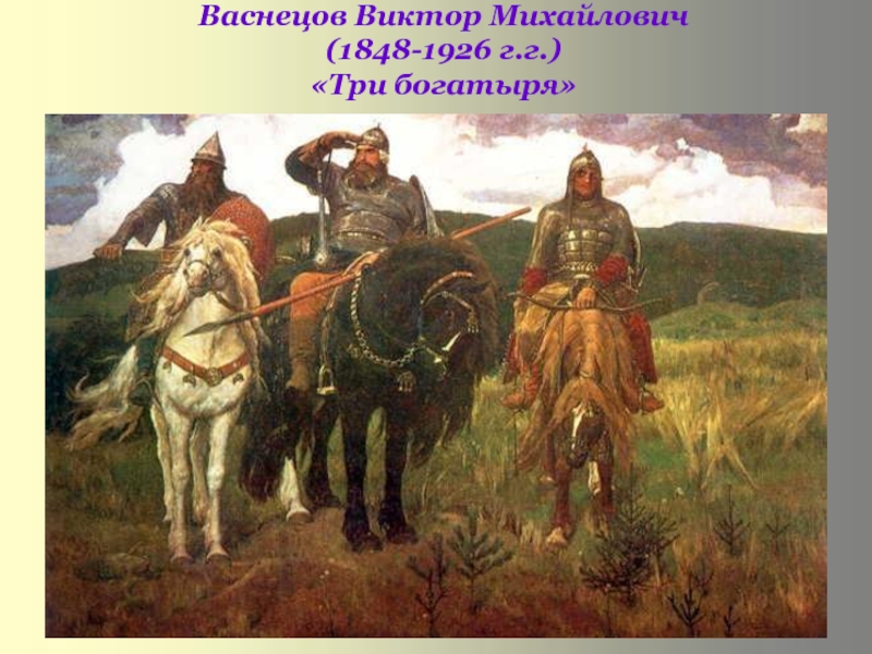 Слайд 5Васнецов Виктор Михайлович (1848-1926 г.г.) «Три богатыря»