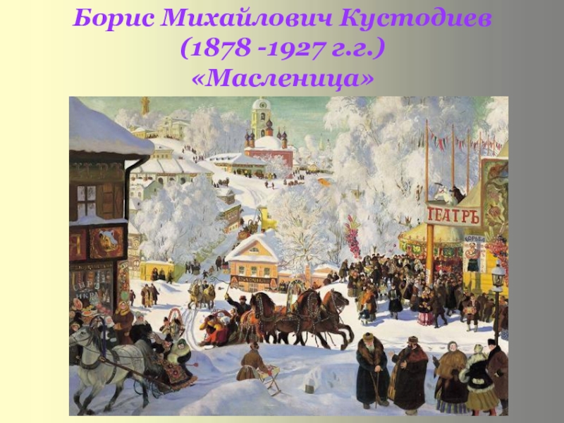 Слайд 19Борис Михайлович Кустодиев (1878 -1927 г.г.) «Масленица»