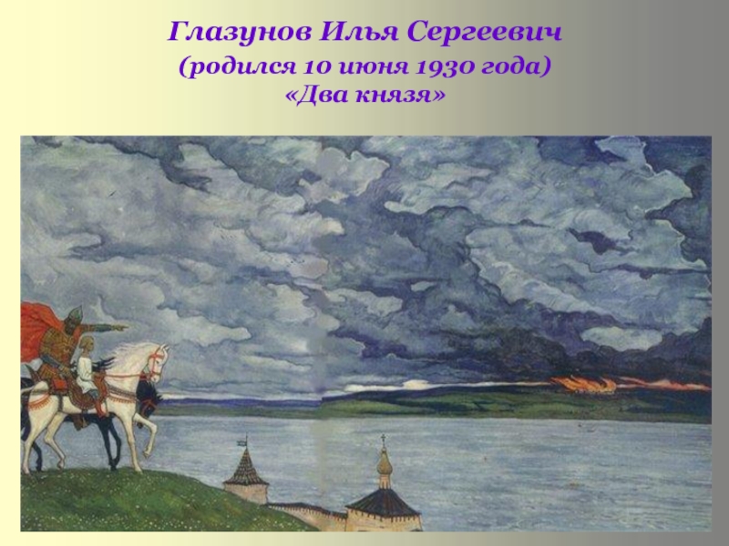 Слайд 6Глазунов Илья Сергеевич (родился 10 июня 1930 года) «Два князя»