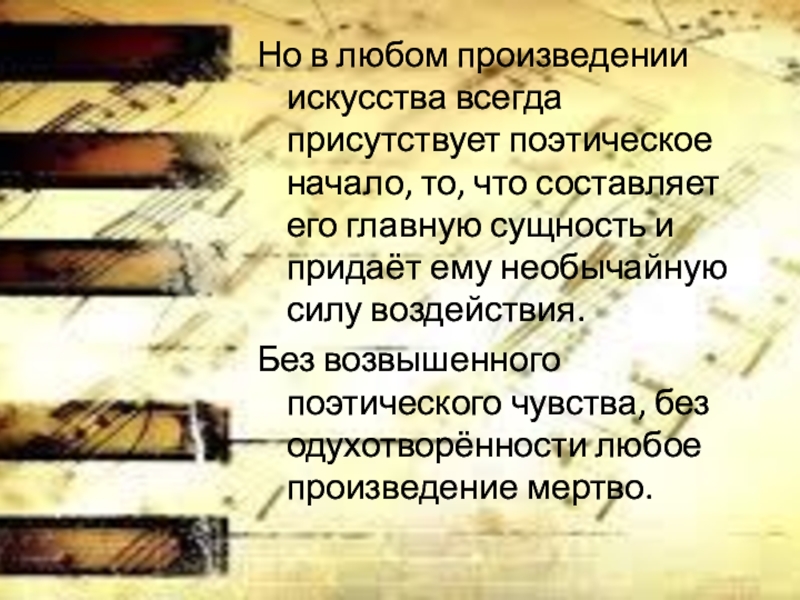 Искусство неподвластно разуму, оно интуитивно. Его постижение приходит прежде понимания умом. То, что не прекрасно, — не искусство.