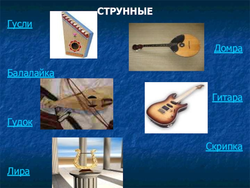 СТРУННЫЕГусли Домра Балалайка Гитара Гудок Скрипка Лира