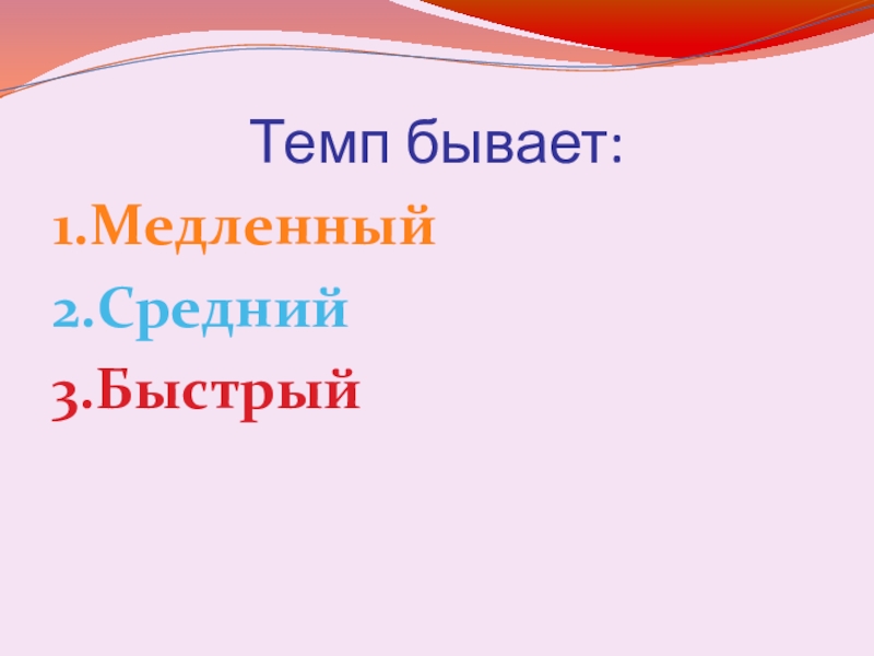 Темп бывает:1.Медленный2.Средний3.Быстрый