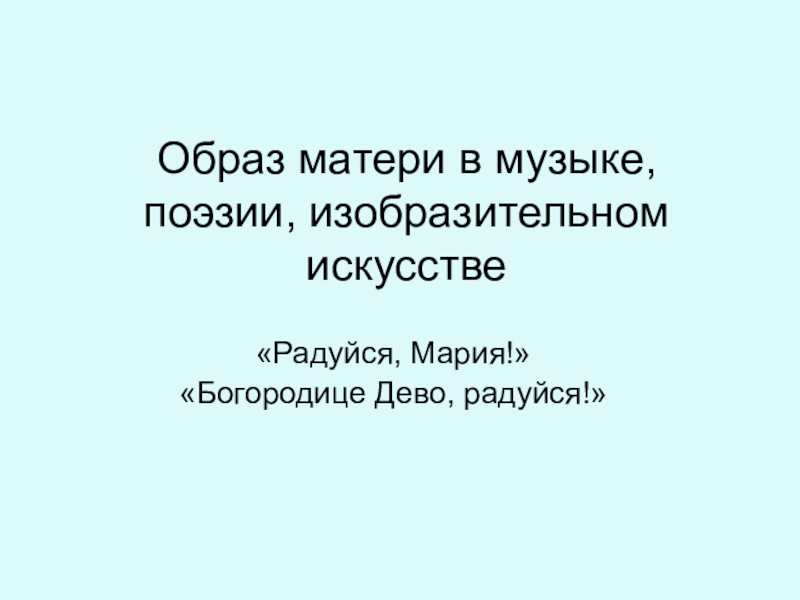Образ матери в музыке, поэзии, изобразительном искусстве«Радуйся, Мария!»«Богородице Дево, радуйся!»