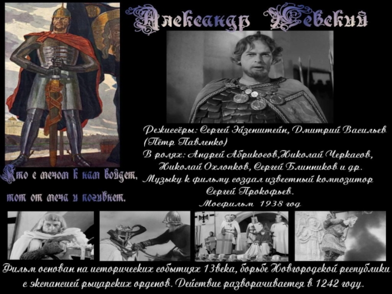 Слайд 23Роль Александра Невского в фильме сыграл актёр Николай Черкасов.