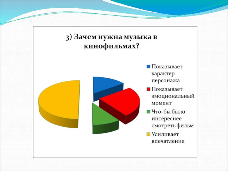 Слайд 9Исследование влияния музыки на кинофильм (данные анкетирования)