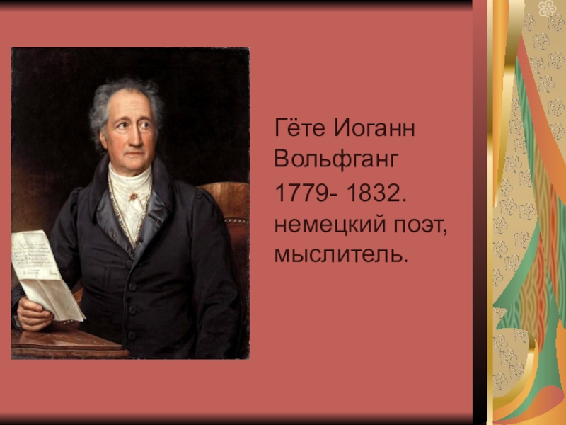 Гёте Иоганн Вольфганг  1779- 1832. немецкий поэт, мыслитель.