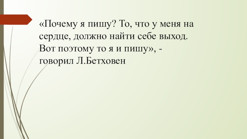 себе выход. Вот поэтому то я и пишу», - говорил Л.Бетховен