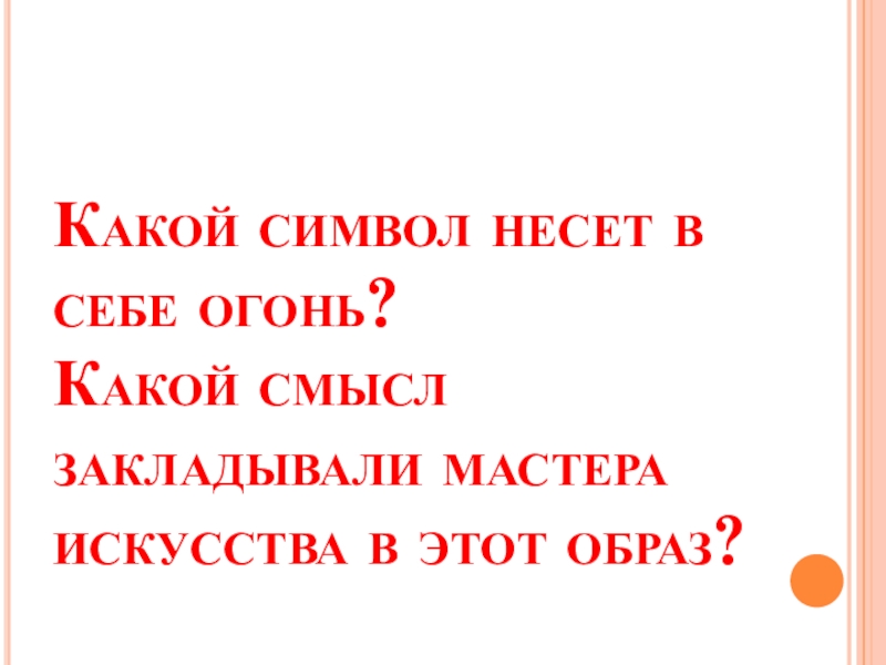 Слайд 2Какой символ несет в себе огонь? Какой смысл закладывали мастера искусства