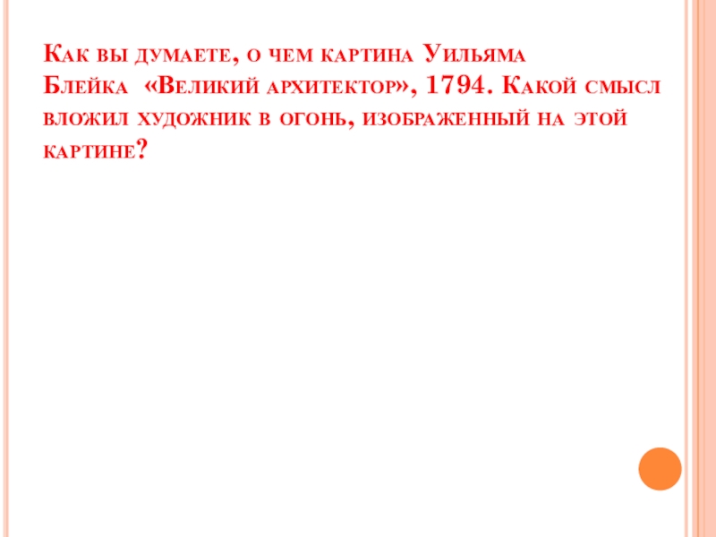 Как вы думаете, о чем картина Уильяма Блейка  «Великий архитектор», 1794. Какой смысл вложил художник в огонь,