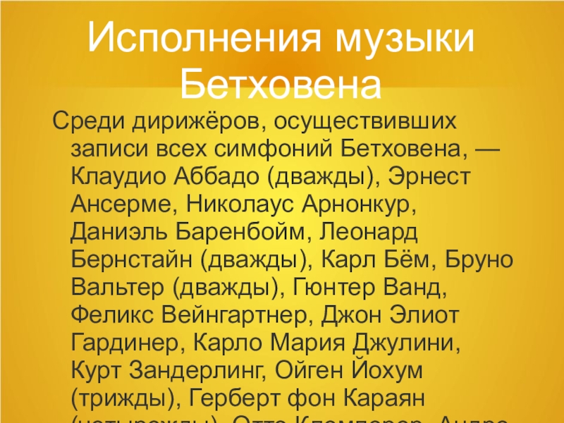 Среди дирижёров, осуществивших записи всех симфоний Бетховена, — Клаудио