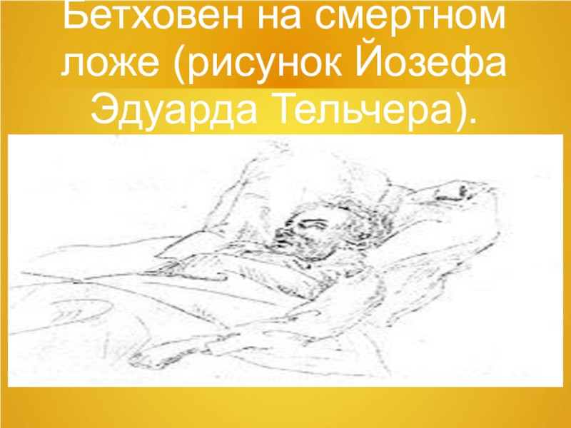 Слайд 18Бетховен на смертном ложе (рисунок Йозефа Эдуарда Тельчера).