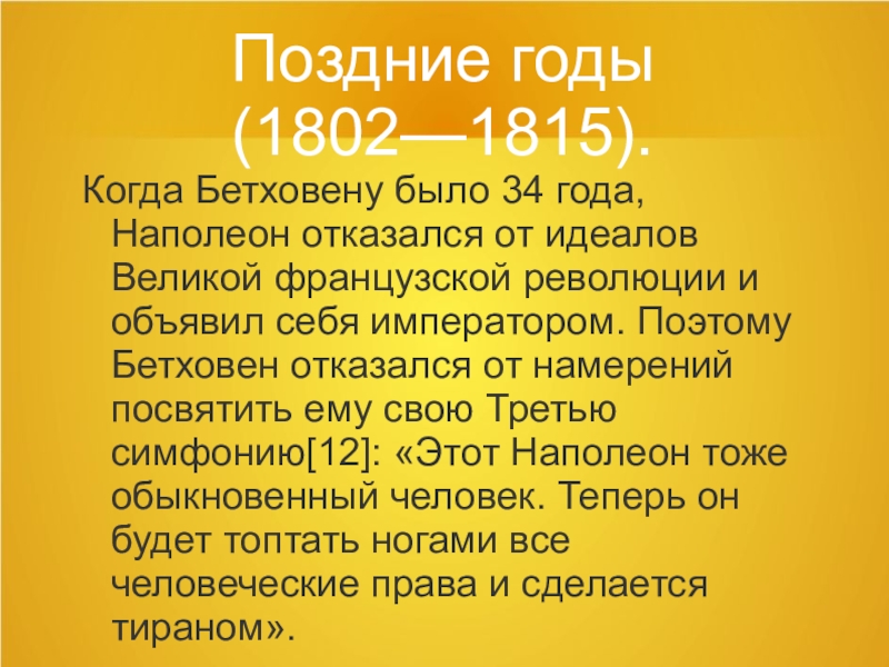 Когда Бетховену было 34 года, Наполеон отказался от идеалов