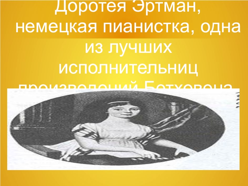Слайд 23Доротея Эртман, немецкая пианистка, одна из лучших исполнительниц произведений Бетховена.