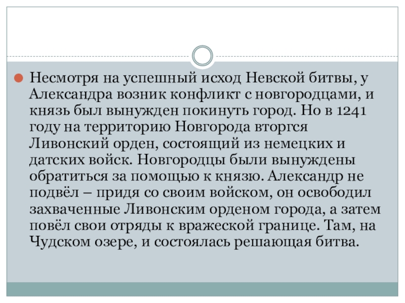 Слайд 4Несмотря на успешный исход Невской битвы, у Александра возник конфликт с