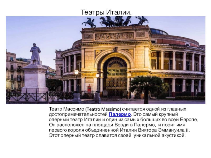 3) Итальянские оперные театры - самые лучшие в Европе. Это и знаменитый миланский "Ла Скалла", и Римский оперный театр, и "Арена ди Верона".