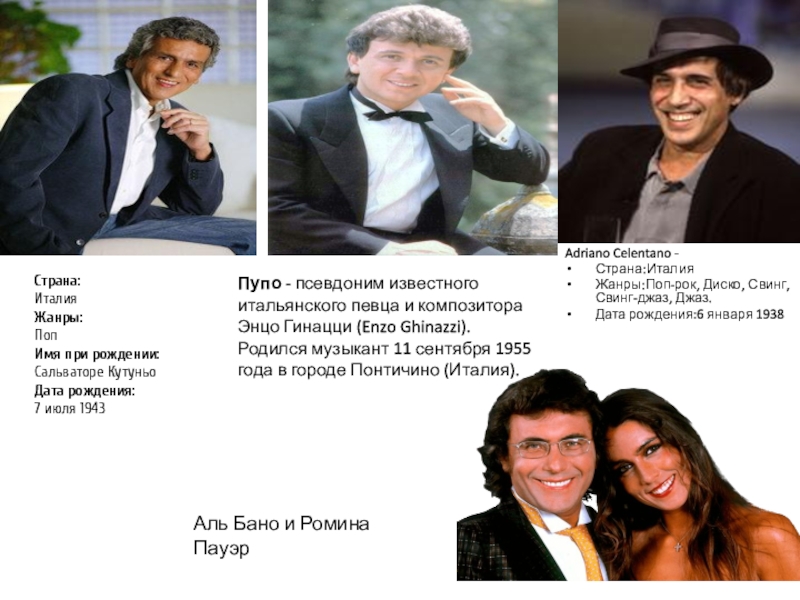 Пупо - псевдоним известного итальянского певца и композитора Энцо Гинацци (Enzo Ghinazzi). Родился музыкант 11 сентября 1955 года в городе Понтичино (Италия).