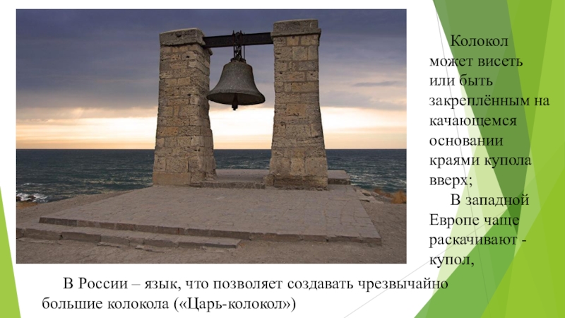 В России – язык, что позволяет создавать чрезвычайно большие колокола («Царь-колокол»)