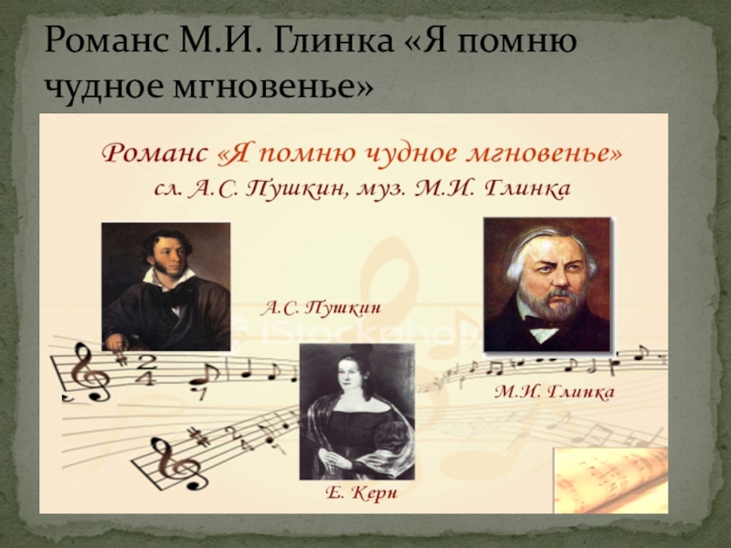 Слайд 7Романс М.И. Глинка «Я помню чудное мгновенье»