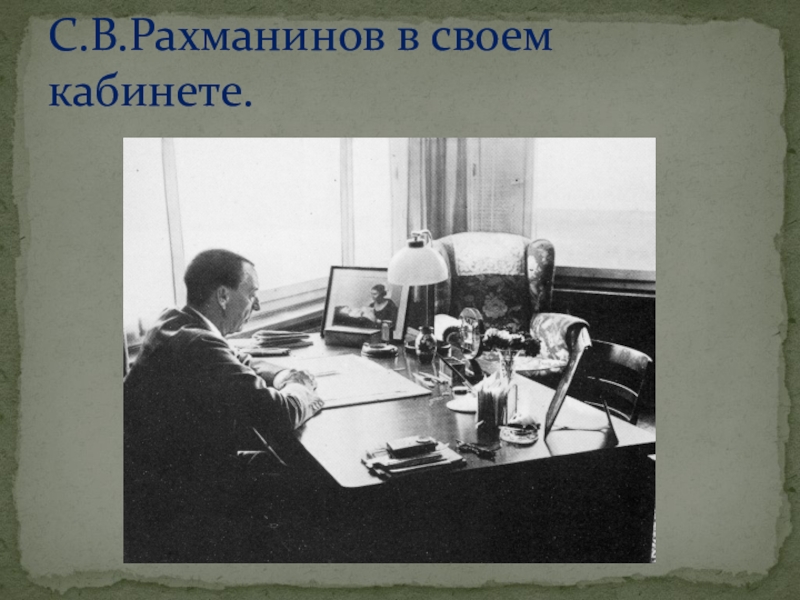 Слайд 3С.В.Рахманинов в своем кабинете.