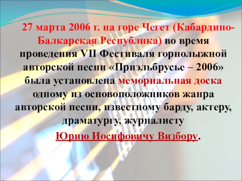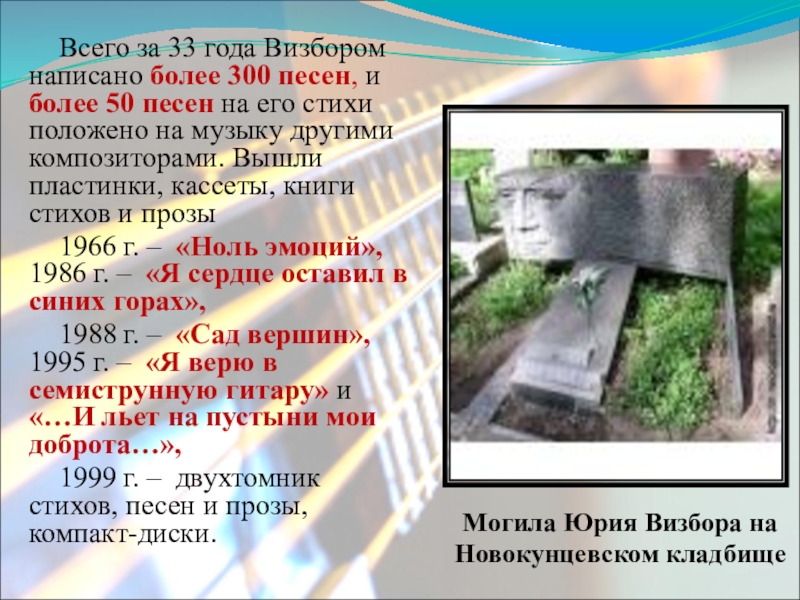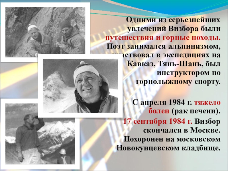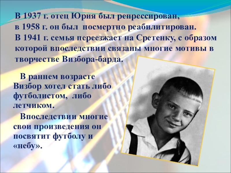 В 1941 г. семья переезжает на Сретенку, с образом которой впоследствии связаны многие мотивы в творчестве Визбора-барда.