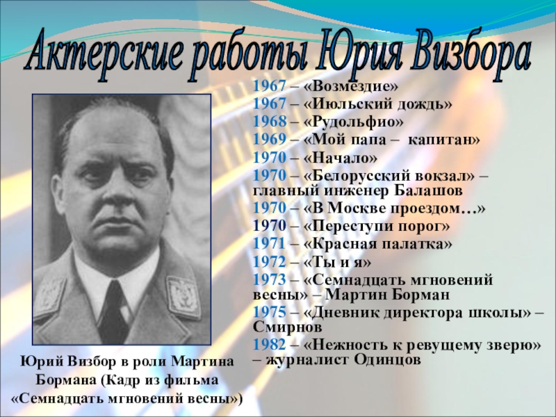 Юрий Визбор в роли Мартина Бормана (Кадр из фильма «Семнадцать мгновений весны»)