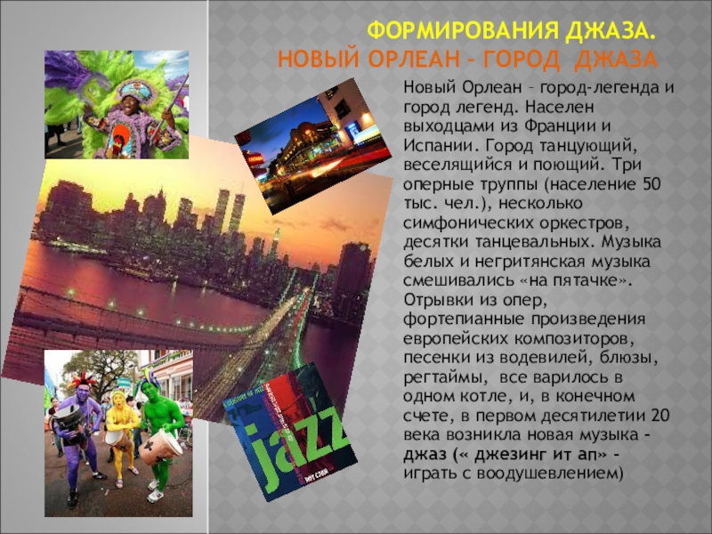 Рэгтайм –негритянский танец кекуок и европейские танцы вальс, кадриль, мазурка, полька…