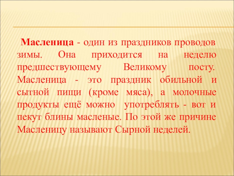 Слайд 3 Масленица - один из праздников проводов зимы. Она приходится