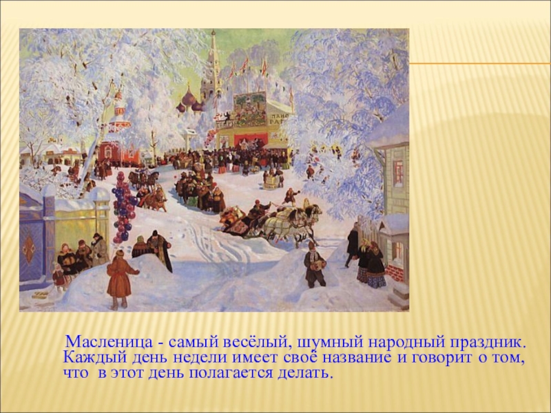 Масленица - самый весёлый, шумный народный праздник. Каждый день недели имеет своё название и