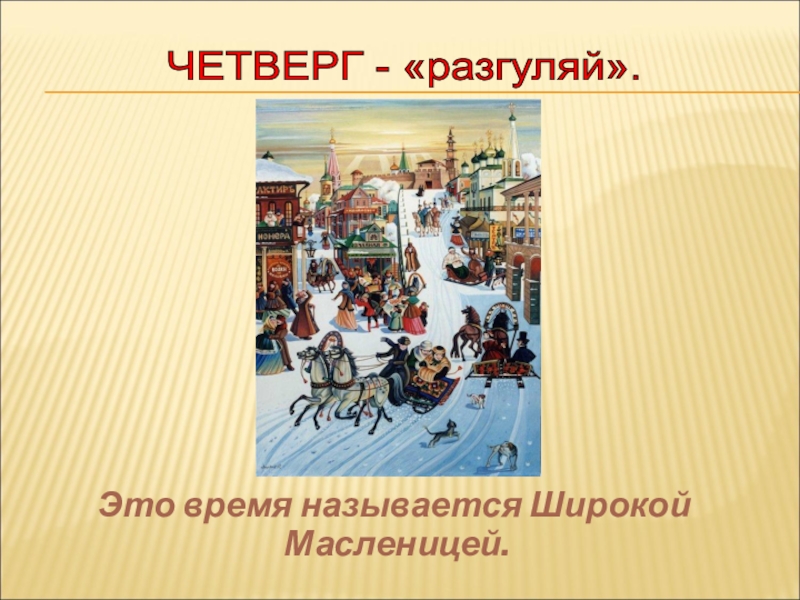 Это время называется Широкой Масленицей.ЧЕТВЕРГ - «разгуляй».