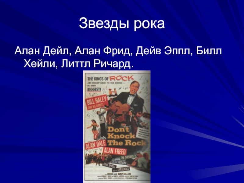 Звезды рокаАлан Дейл, Алан Фрид, Дейв Эппл, Билл Хейли, Литтл Ричард.