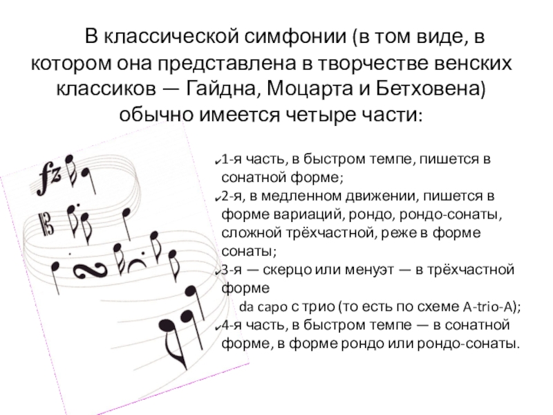 3-я — скерцо или менуэт — в трёхчастной форме