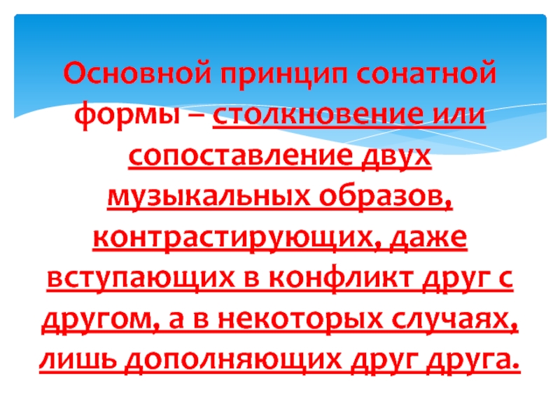 Слайд 9Основной принцип сонатной формы – столкновение или сопоставление двух музыкальных образов,
