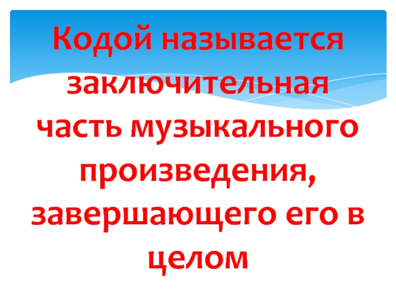 Слайд 8Кодой называется заключительная часть музыкального произведения, завершающего его в целом