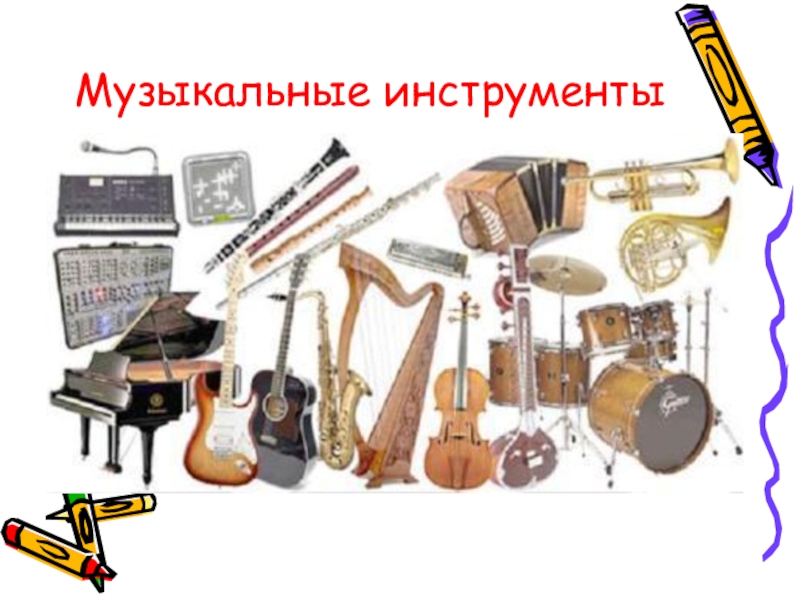 УБЕРИТЕ ЛИШНЕЕ!арфабалалайкарояльгитаратрубафлейтадудочкабарабантарелкиоркестрбубенложкилютнячонгурискрипка
