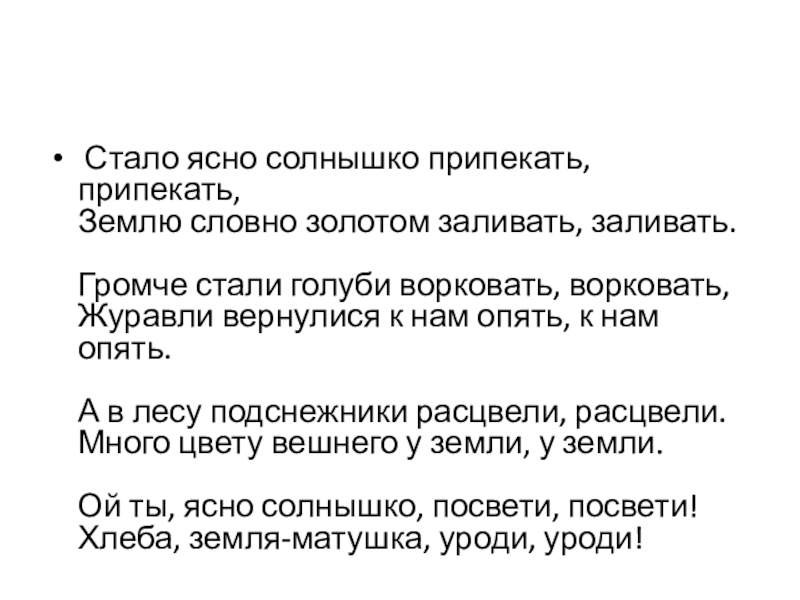 Слайд 11 Стало ясно солнышко припекать, припекать,