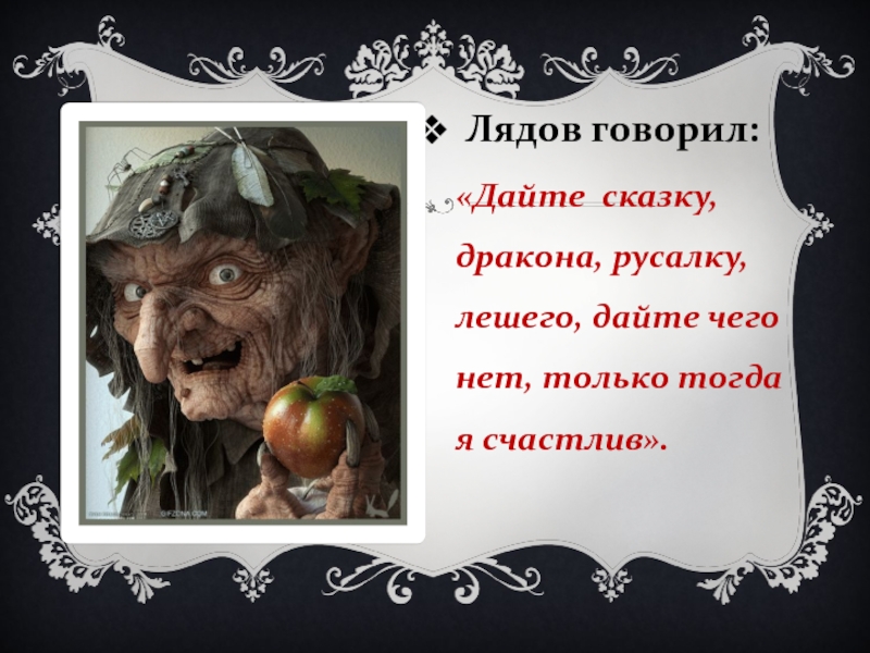 «Дайте  сказку, дракона, русалку, лешего, дайте чего нет, только тогда я счастлив».