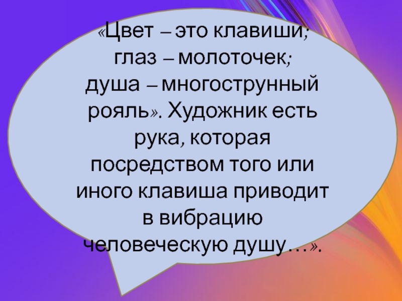 Художник есть рука, которая посредством того или иного клавиша приводит в вибрацию человеческую душу…».